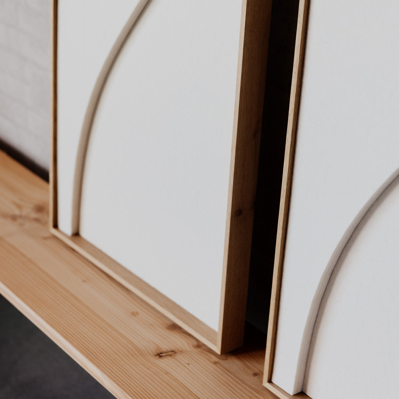 Oplev harmonien mellem kunst, funktionalitet og recycling med vores Arch - Arturel x Kvadrat kollektion. Disse akustikpaneler af filt er fremstillet af genbrugstekstiler fra Kvadrat og indrammet i elegant egetræ, hvilket giver en kombination af effektiv lydabsorberende filt og et unikt kunstnerisk udtryk.